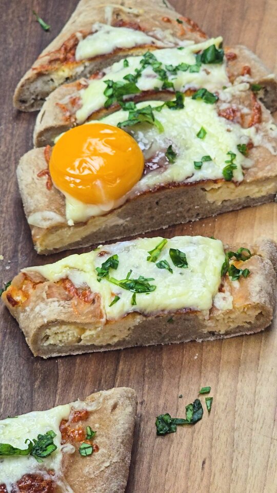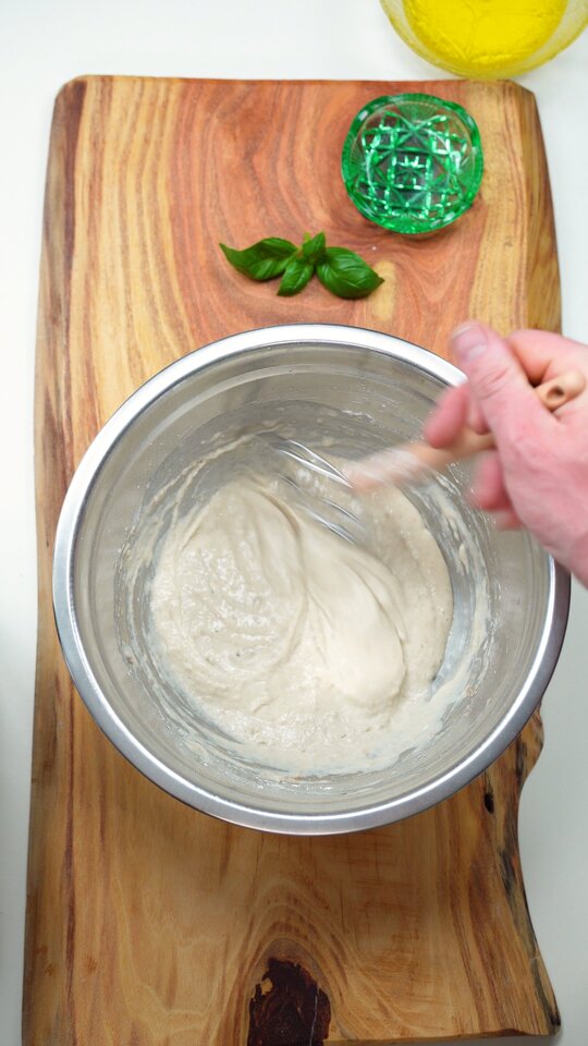 In a large bowl, add the yeast, sugar and pour in the lukewarm water, combining everything with 4 tablespoons of flour and allowing it to rest for 5-10 minutes, until bubbly. Optionally, for a better texture, add in the psyllium husk flour and whisk until you get a thick consistency, and let it sit for another 2 minutes. Sift in the rest of the flour, add the oil and continue whisking, then add the salt and start kneading with your hand, until you get a smooth dough. Cover and let rise in a warm place for 45 minutes, or until doubled in size. |