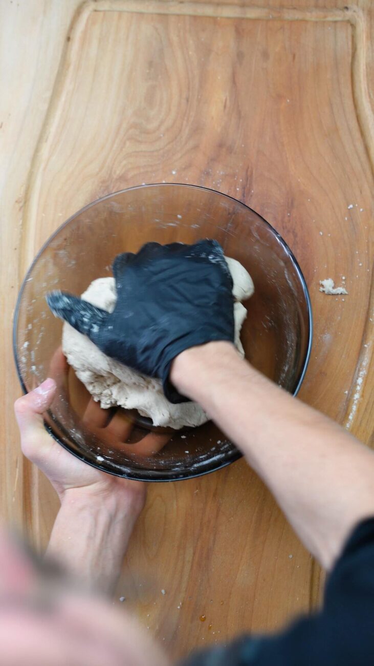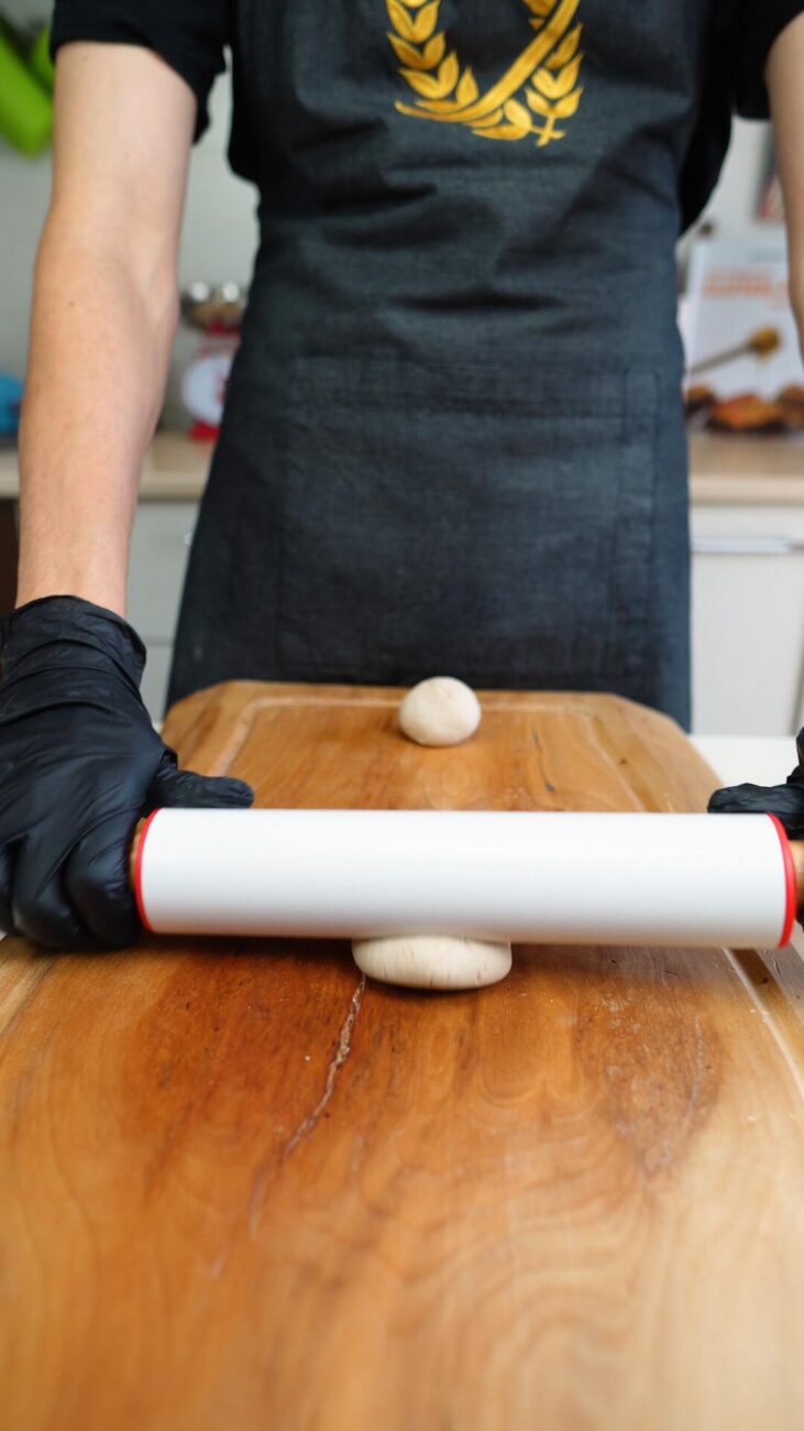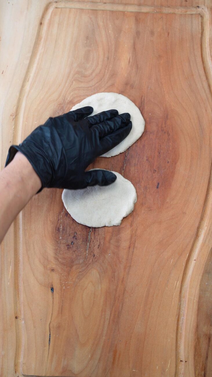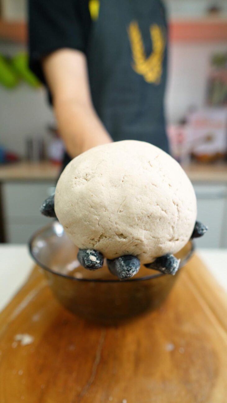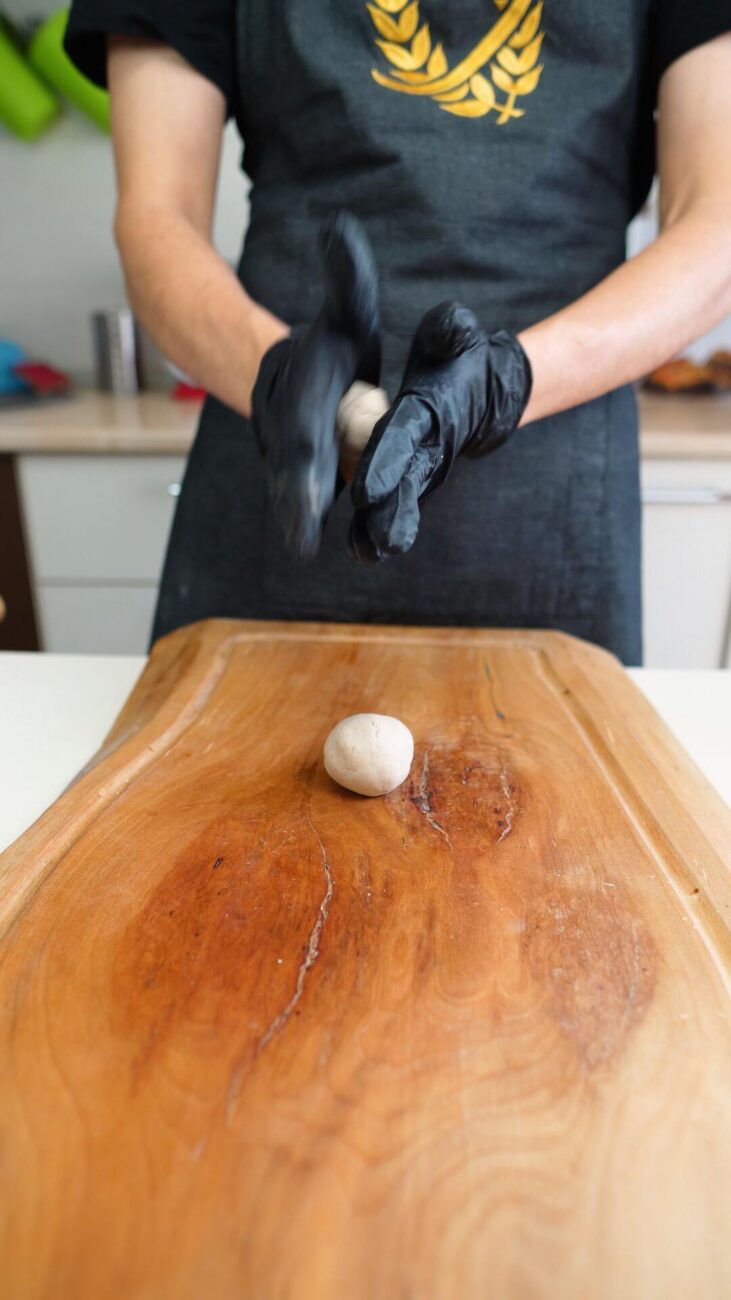 | 2 Gata | Preîncălziți cuptorul la 180 ℃. Rupeți o bucată mică de aluat, pe care o împărțiți în două părți egale și începeți să o modelați în palme, formând biluțe. Apăsați-le ușor cu un făcăleț până obțineți forme uniforme. Întindeți puțină dulceață pe prima bucată, fără a o apropia prea mult de margini. Decupați diferite fețe pe a doua bucată, așezând-o peste prima. Lipiți-le ușor, apăsând marginile. (opțional, înmuiați degetele în apă). |